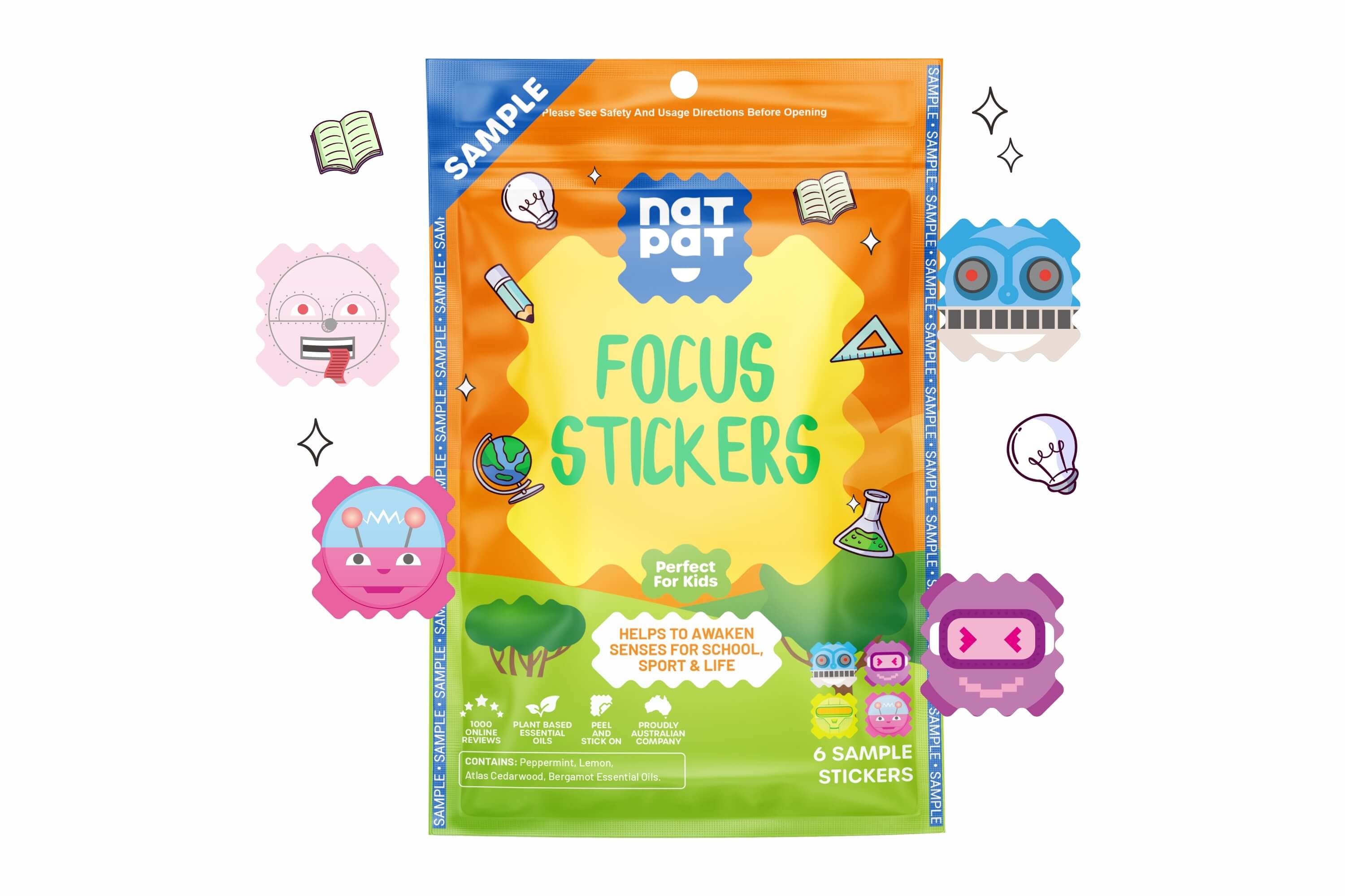 NATPAT Focus Stickers use the power of essential oils and slow-release nanotechnology to help improve focus, enhance concentration, and keep distractions at bay.