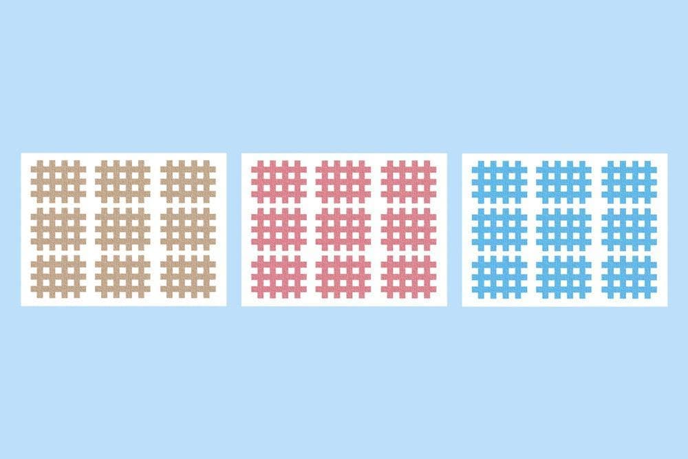 Each pack comes with 27 individual patches (9 pink, 9 blue, 9 tan).