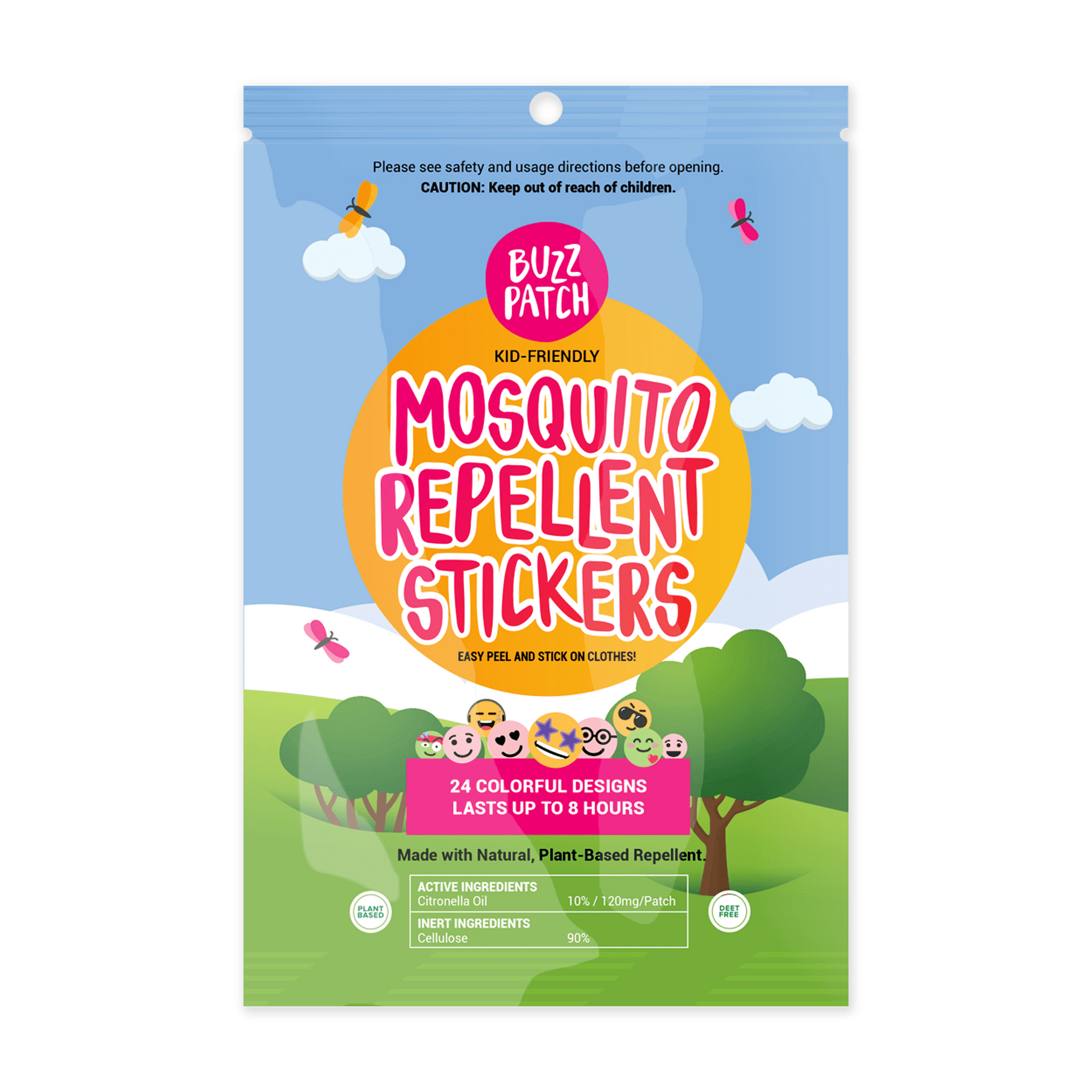 - 30 x BuzzPatch individual resale packets in Retail Display Boxes - 30 x MagicPatch individual resale packs in Retail Display Boxes - 1 FREE sample packet of SleepyPatch, SunnyPatch, and ZenPatch to show customers (24x patches in a packet) - This order will be sent out via ExpressPostage for FREE! BuzzPatch is made using non-woven fabric patches, infused with a combination of Citronella and other essential oils which are perfectly safe for your kids. Unlike topical sprays which contain DEET or Picaridin, BuzzPatch is not only easy to apply, but environment-friendly!