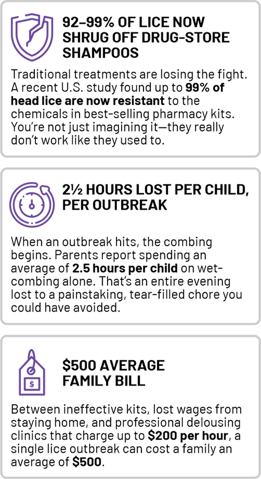 Lice aren’t a cleanliness issue—they’re an evolution issue. While poisons fall behind, parents are left juggling school absences, itchy kids, and wallet‑draining treatments. That’s the pain we designed out of the equation.